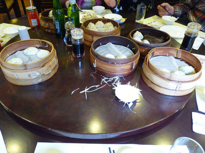 豫園(私家花園)散策。玉玲龍と呼ばれる大湖石や迫力ある龍壁見る。午後4時ころに小龍包で有名な「南翔饅頭店」で小休止。