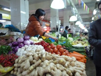 市場の中。我 看看。