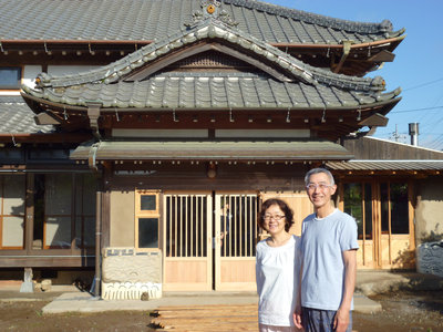 慈慈の邸の玄関にて皆さんと記念写真。後列真ん中の男性が平田シェフ。前列の左の方がデコさん。