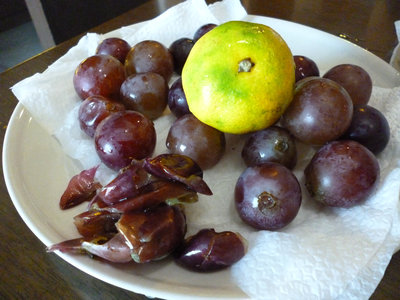 よく眠れた。(パタカラのおかげだ )朝食はもちろんフルモニ。昨夜買ったブドウとみかん。