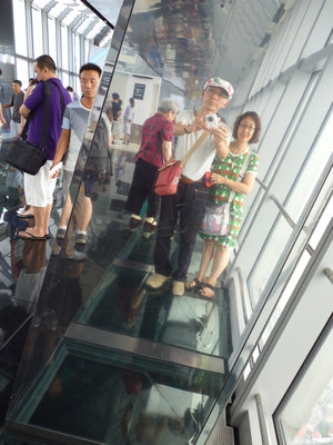 まずは、地下鉄にて浦東(プートン)にある高層ビルのひとつ「上海環球金融中心」に向かう。入場料150元×2を払おうとすると…。太太が(ここに60歳以上は100元って書いてあるわよ)と。英語か中国語か忘れたが年齢を言い、パスポート見せる。二人で100元安くなる。さすが太太である。