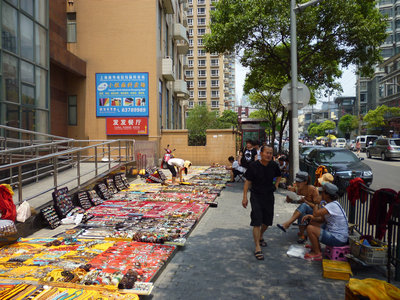 布生地マーケット。とてもおもしろく楽しい。カッターシャツを一着オーダーする。採寸してくれる。明日の午後にはできるそうだ。代金は180元。約2000円ぐらいである。パンダが太極拳をしている図柄のTシャツが気に入る。あちこちのお店で同じTシャツを売っている。値段交渉をする。最も高いところは150元。結局購入した値段は30元だった。中国語での値段交渉もおもしろい。