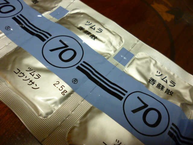 診療室に行き、漢方薬を探す。 妻に「香蘇散」2包飲ます。