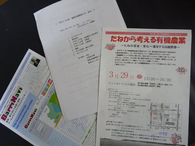 写真:豊橋有機農業の会の資料。(会場を写真に撮ろうとしたが写真機忘れる)