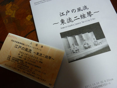 時計とにらめっこしながら、駅に急ぐ。新幹線にて浜松へ。浜松楽器博物館にて「江戸の風流・二弦琴の世界」鑑賞。(粋だノン) 会場でふと横を見ると…とま兄氏がいた。