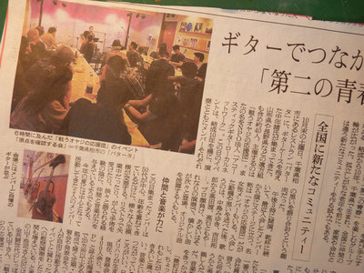 写真:夕刊の記事より「ギターでつながる第二の青春」