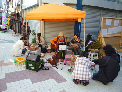 音楽仲間のミュージシャンが次々に演奏。天気もよく、ここちよい土曜の午後を楽しむ。